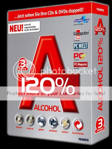 Alcohol 120%, le permite hacer un duplicado de copias de seguridad a los medios de comunicación grabable de casi todas sus caras Game / Software / DVD de los títulos, y / o una imagen que se puede montar y ejecutar desde cualquiera de las unidades virtuales del Alcohol.